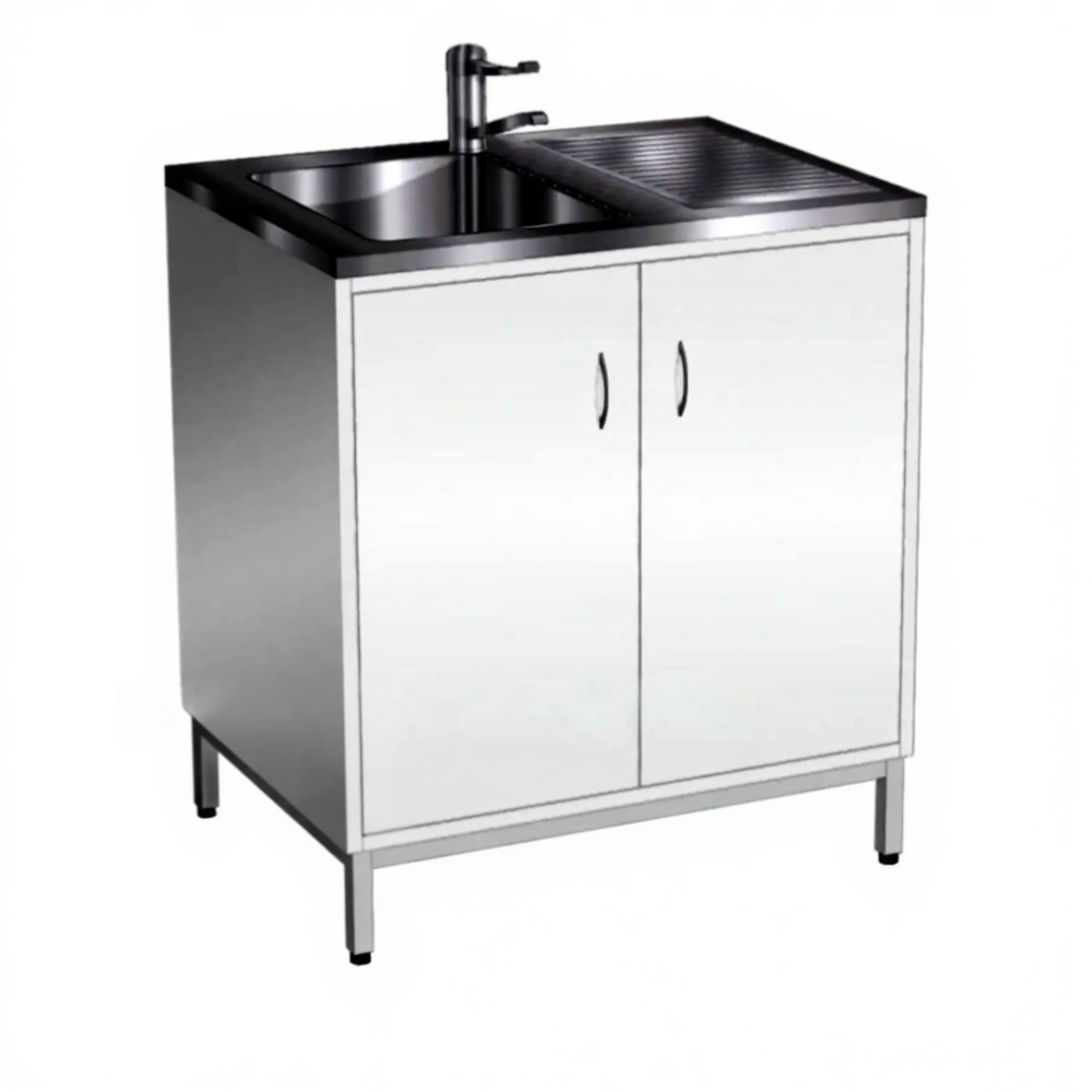 Стол-мойка СТм-103 «Стандарт» 800 (корпус металл серый, каркас серый) — это необходимая составляющая для оснащения рабочей зоны, обеспечивающая удобство и безопасность труда специалистов-исследователей в кабинетах лабораторий. Модель предназначена для мытья и сушки лабораторной посуды. Оснащена накладной одночашевой мойкой с сушкой из нержавеющей стали, локтевым смесителем и тумбой с двумя дверками. Каркас выполнен из стального профиля, корпус из стального листа с полимерно-порошковым покрытием.