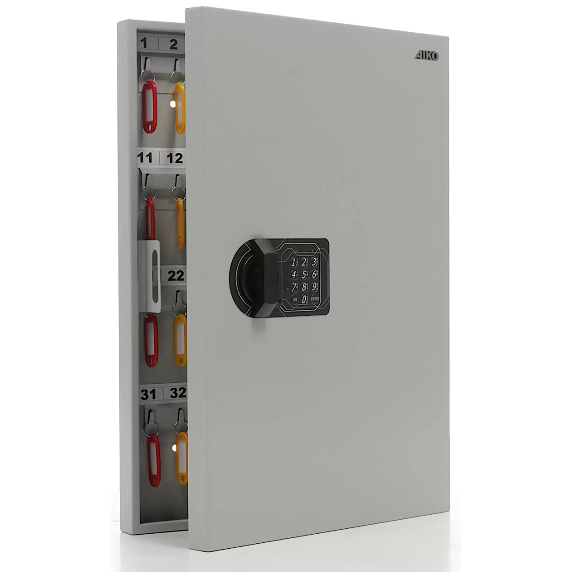 - Надежная физическая защита и сохранность ключей — корпус, изготовленный из стали толщиной 0,9 мм, и электронный кодовый замок обеспечивают эффективную защиту от кражи, порчи и несанкционированного доступа к ключам, хранящимся внутри.