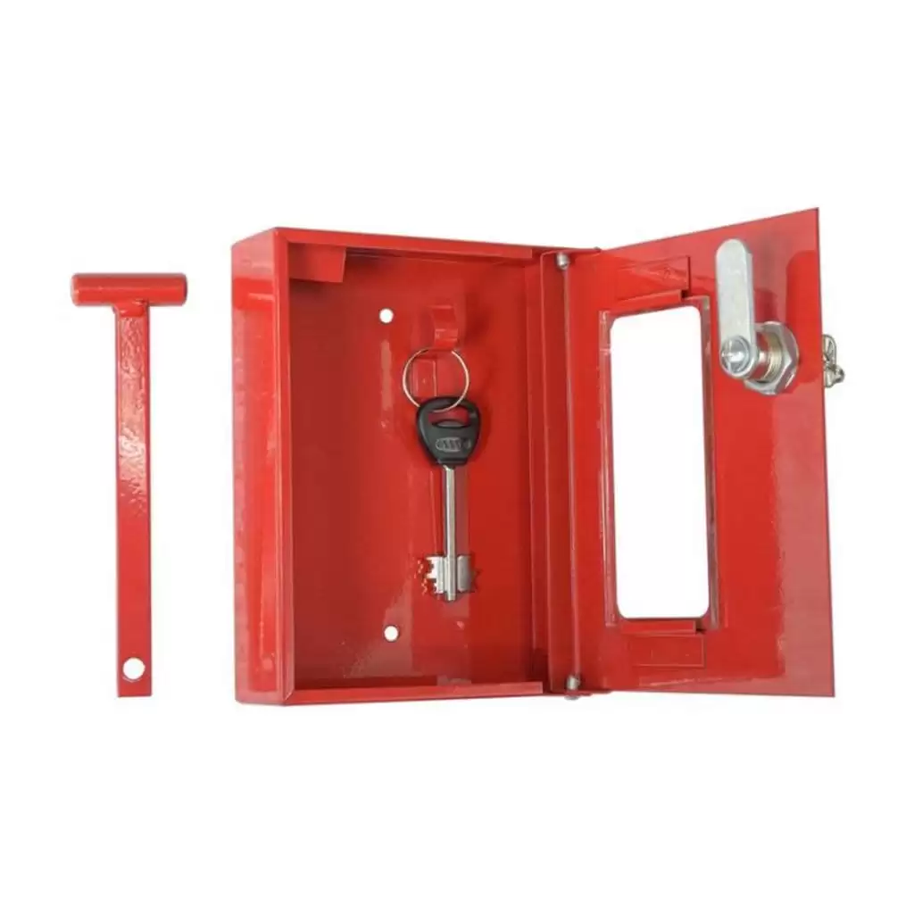 - Мгновенный доступ для аварийных служб и персонала — наличие прозрачного стеклянного окошка обеспечивает визуальный контроль за ключом, а встроенный молоточек позволяет в экстренном случае быстро разбить стекло и получить доступ к содержимому без использования дополнительных инструментов.