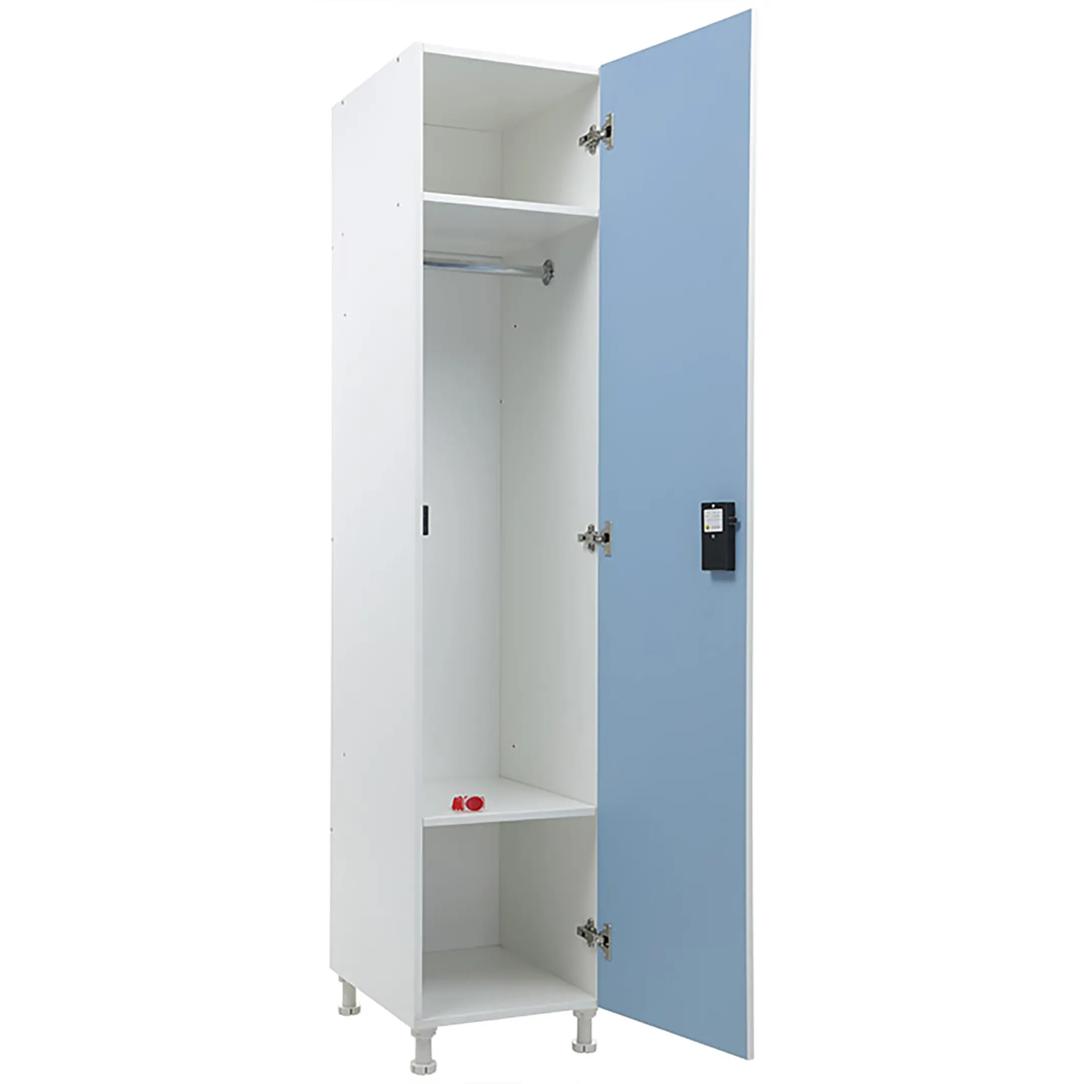 Шкаф для раздевалок WL 11-40 EL голубой/белый — это современное и функциональное решение для хранения одежды в спортивных, производственных, образовательных и других помещениях. Модель изготовлена из высококачественных материалов с применением современных технологий, оснащена электронным замком, выполняющим роль ручки для открывания двери.