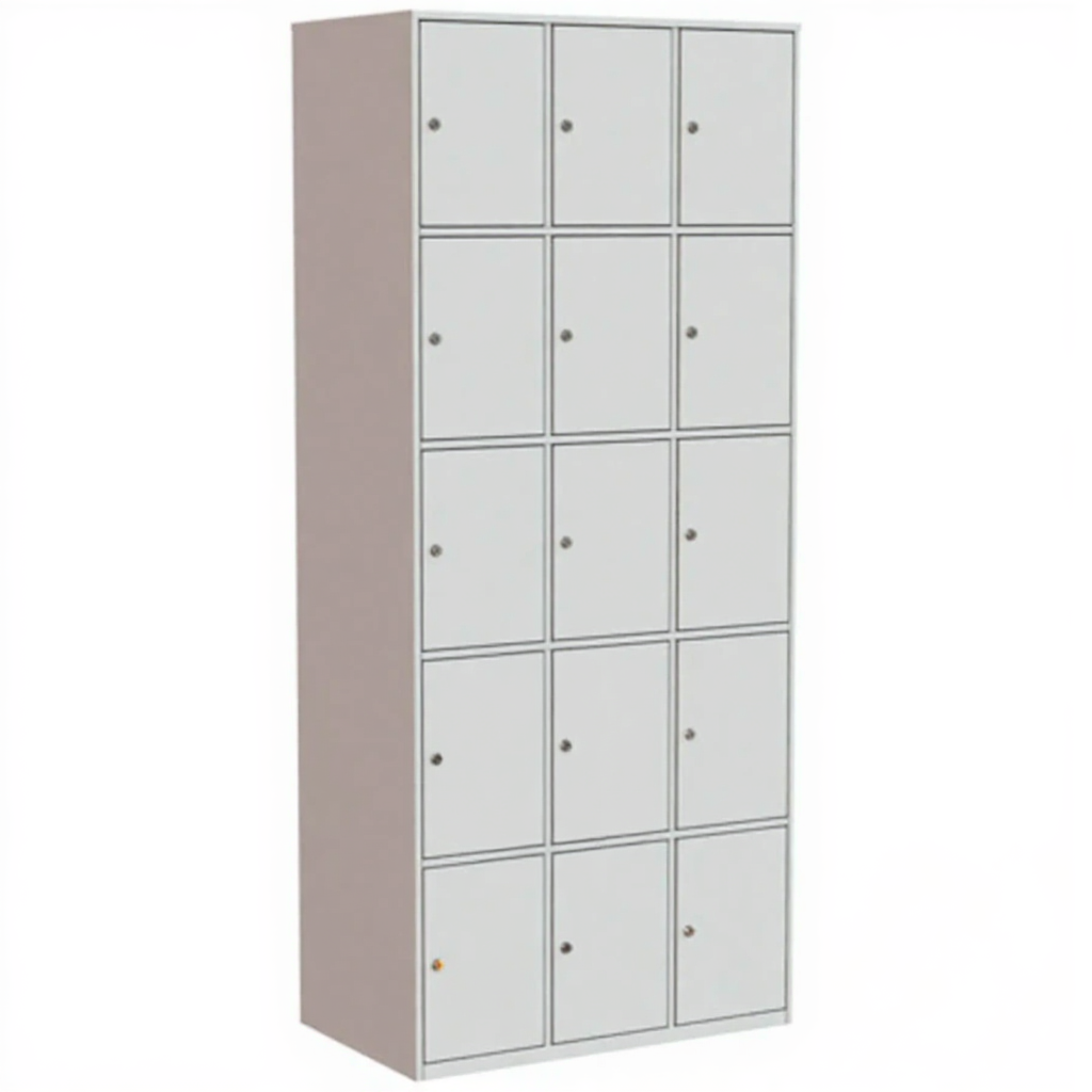 - Индивидуальные ячейки с замками — каждая из 15 секций оснащена дверцей, обеспечивающей персональное хранение и защиту содержимого.