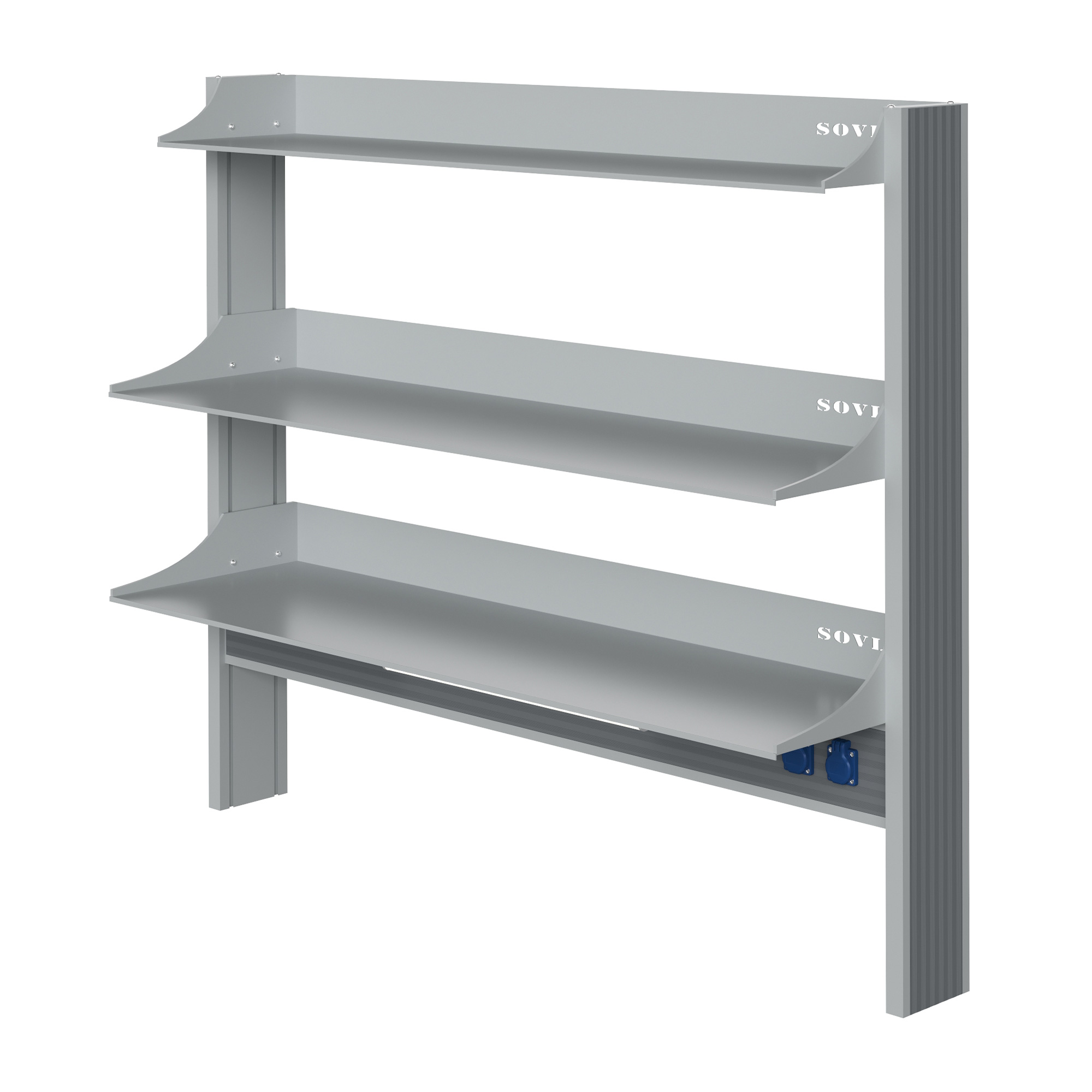 - Усиленная конструкция для приборов — три металлические полки глубиной 400 мм (2 шт.) и 300 мм (1 шт.) с высокими бортами обеспечивают надежное размещение оборудования.