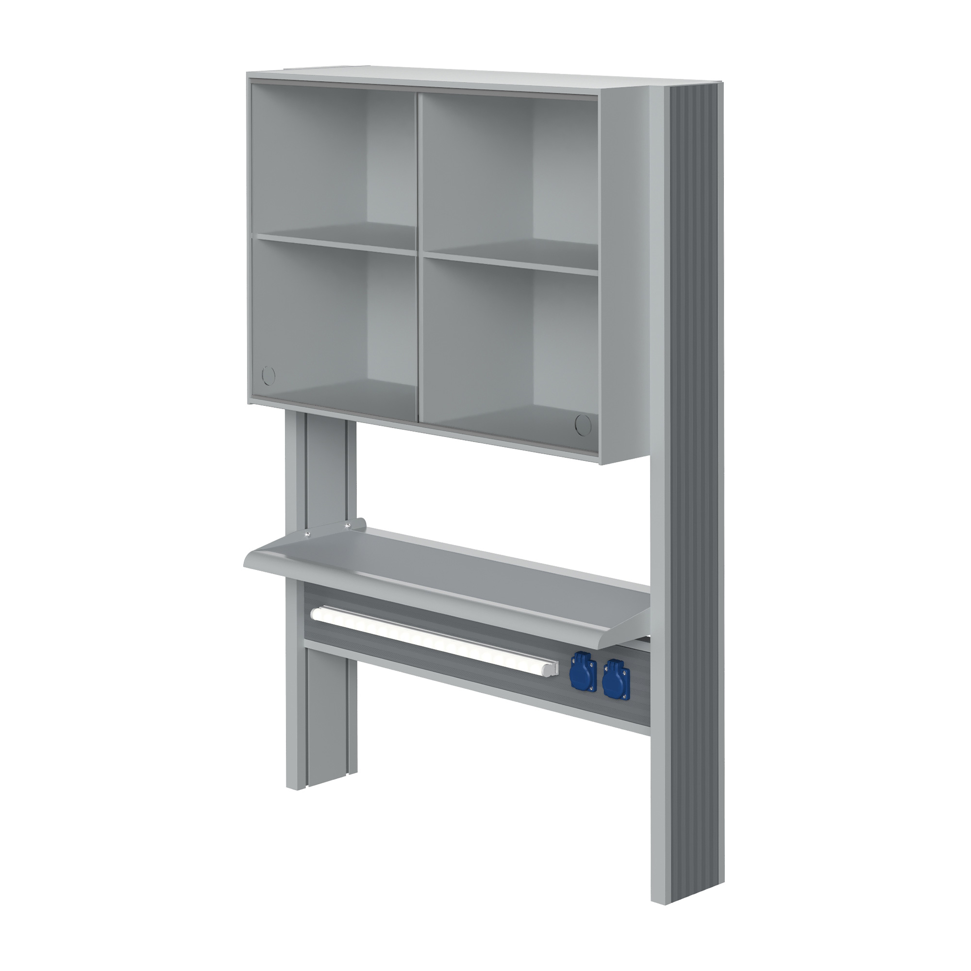 Технологический стеллаж со шкафом 600 мм для пристенного стола Mod. 900 ТСПШ-60 — это специализированное лабораторное оборудование, устанавливаемое на пристенные столы и предназначенное для хранения лабораторной посуды, приборов, реактивов и принадлежностей. Модель оснащена вместительным шкафом с раздвижными стеклянными дверями, полками, блоком электророзеток повышенной защиты и светодиодным светильником для местного освещения рабочей зоны.