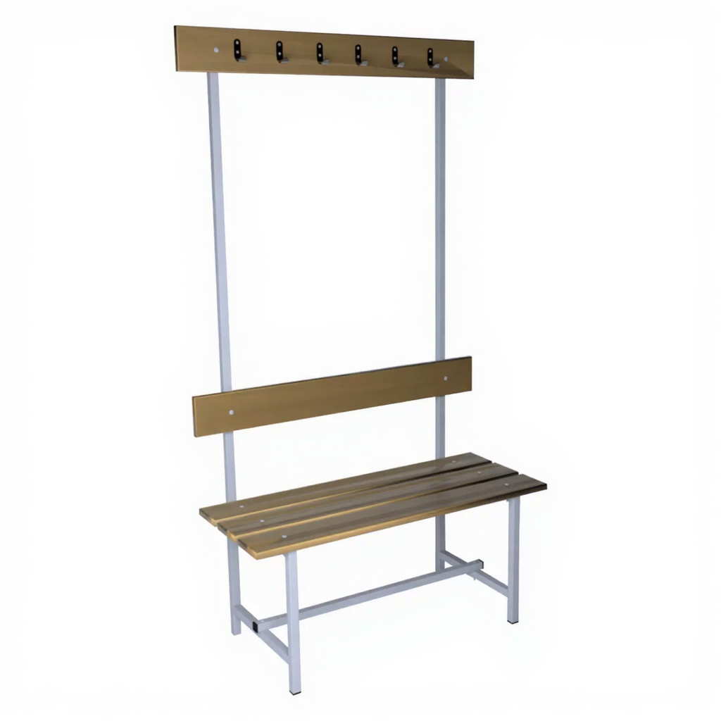 Скамья с вешалкой односторонняя 6 крючков — это надежное и функциональное решение для оборудования раздевалок, вестибюлей, гардеробных комнат в спортивных учреждениях, школах, производственных помещениях и т.п.