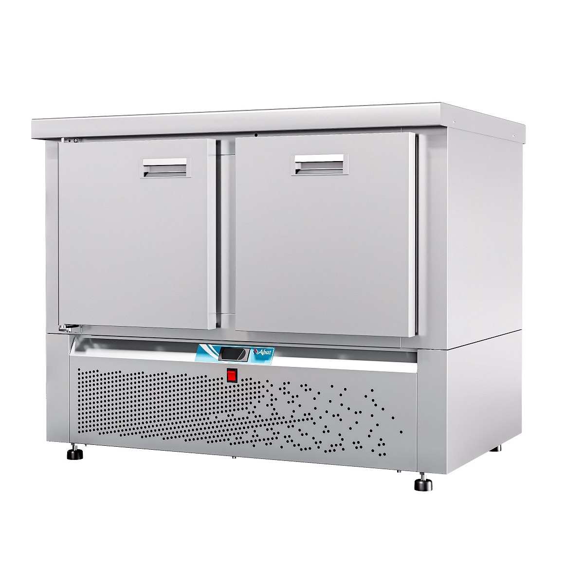 Особенности Электронная панель управления; потребление электроэнергии за сутки, кВт*ч, не более 3,36; климатический класс изделия - 5; поверхность стола - ровная неохлаждаемая поверхность без борта; толщина стенок 60 мм; холодильный агрегат расположен снизу, выдвижной для удобства обслуживания; хладагент - R404a; электронный блок управления с возможностью регулирования и поддерживания необходимой температуры; динамическое охлаждение - воздухоохладитель с вентилятором для равномерного распределение температуры внутри полезного объема; работа при температуре окружающей среды до +42 °C, относительной влажности от 40 до 70%; цельнозаливной пенополиуретаном корпус; автоматическая оттайка; 2 секции - дверь и ящик 1; одна регулируемая по высоте полка-решетка размером GN 1/1; уплотнитель с магнитной вставкой на двери для обеспечения полной теплоизоляци; передняя и задняя стенки легкосъемные; регулируемые по высоте ножки, которые могут опционально быть заменены на колеса (2 со стопором, 2 без стопора) без изменения высоты стола. Секции холодильных столов взаимозаменяемые. Предусмотрена возможность замены двери на секцию из одного или двух ящиков, и наоборот. Описание Стол холодильный низкотемпературный с нижним расположением агрегата предназначен для кратковременного хранения пищевых продуктов на предприятиях общественного питания и торговли. Рациональное использование рабочего пространства кухни за счет совмещения в одном изделии функции холодильного шкафа и рабочего стола.