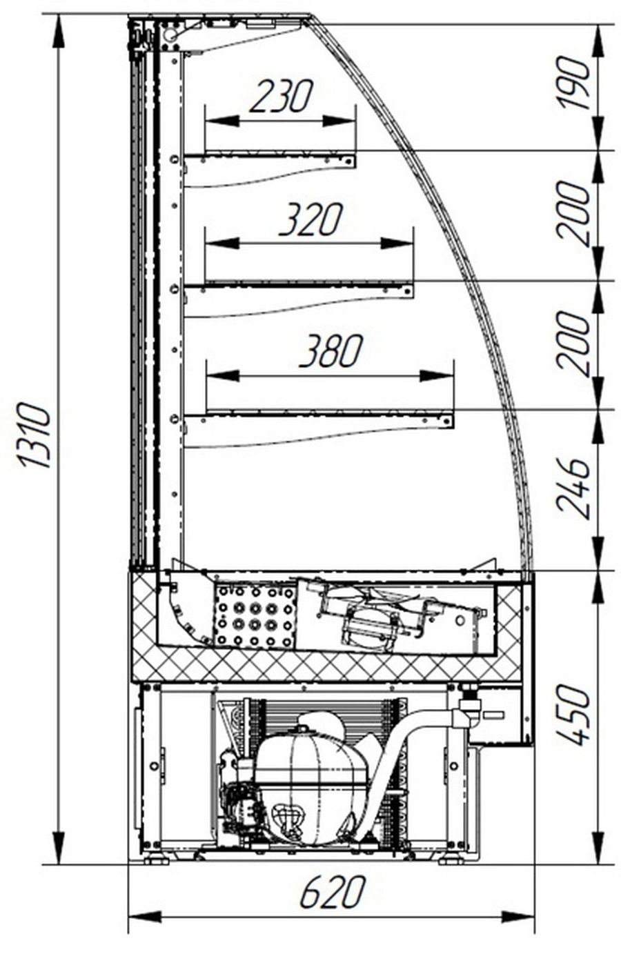 ВИТРИНА кондитерская ВПВ ADAGIO 900 (EL.2.G9005гл.А9005гл.В9005гл.P1.PS.RAL9005гл.)