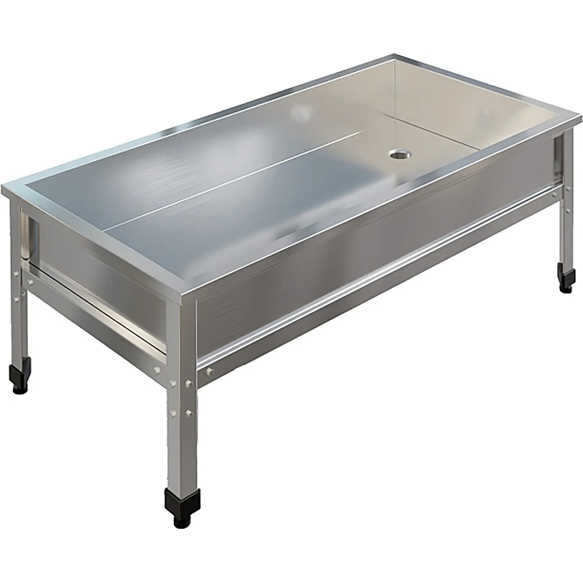 Ванна моечная низкая ВМСН-10/6/4-ЭЦ разработана для применения в производственных и моечных отделениях предприятий общепита и торговли различного формата, пищевых производств и пищеблоков для мытья и дезинфекции уборочного инвентаря, посуды и кухонных принадлежностей.