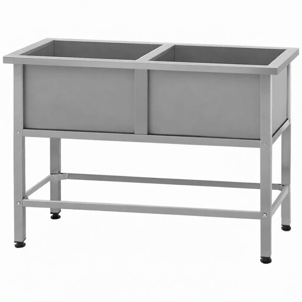 Ванна моечная ВМСн 530/2  2 м/о 430х430х300 (полка с отв. борт; ножка проф. тр. 40х40)
