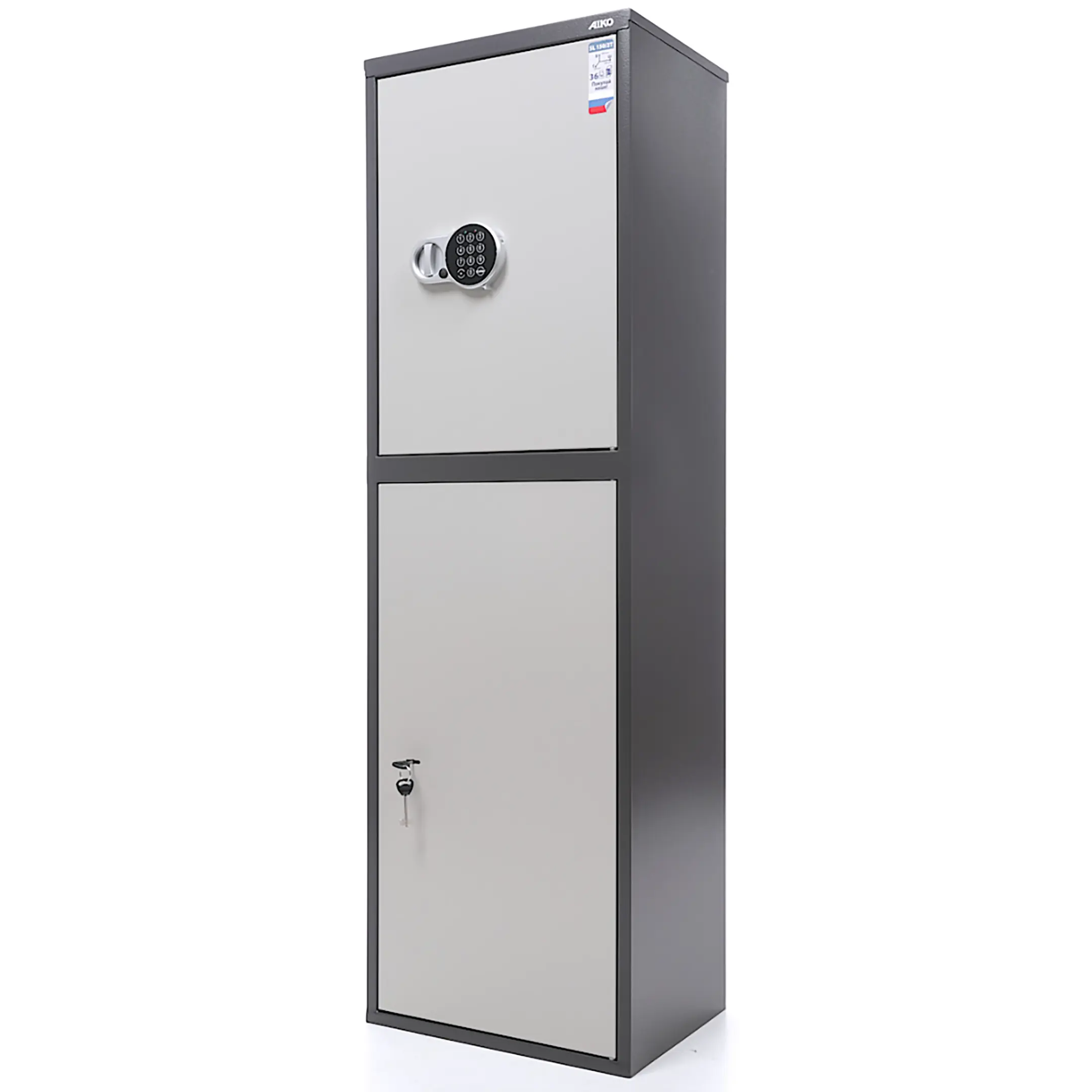 • комплектуется ключевым замком + электронный замок PLS-1( электронный замок устанавливается только на верхнюю дверь, на остальные – ключевой);