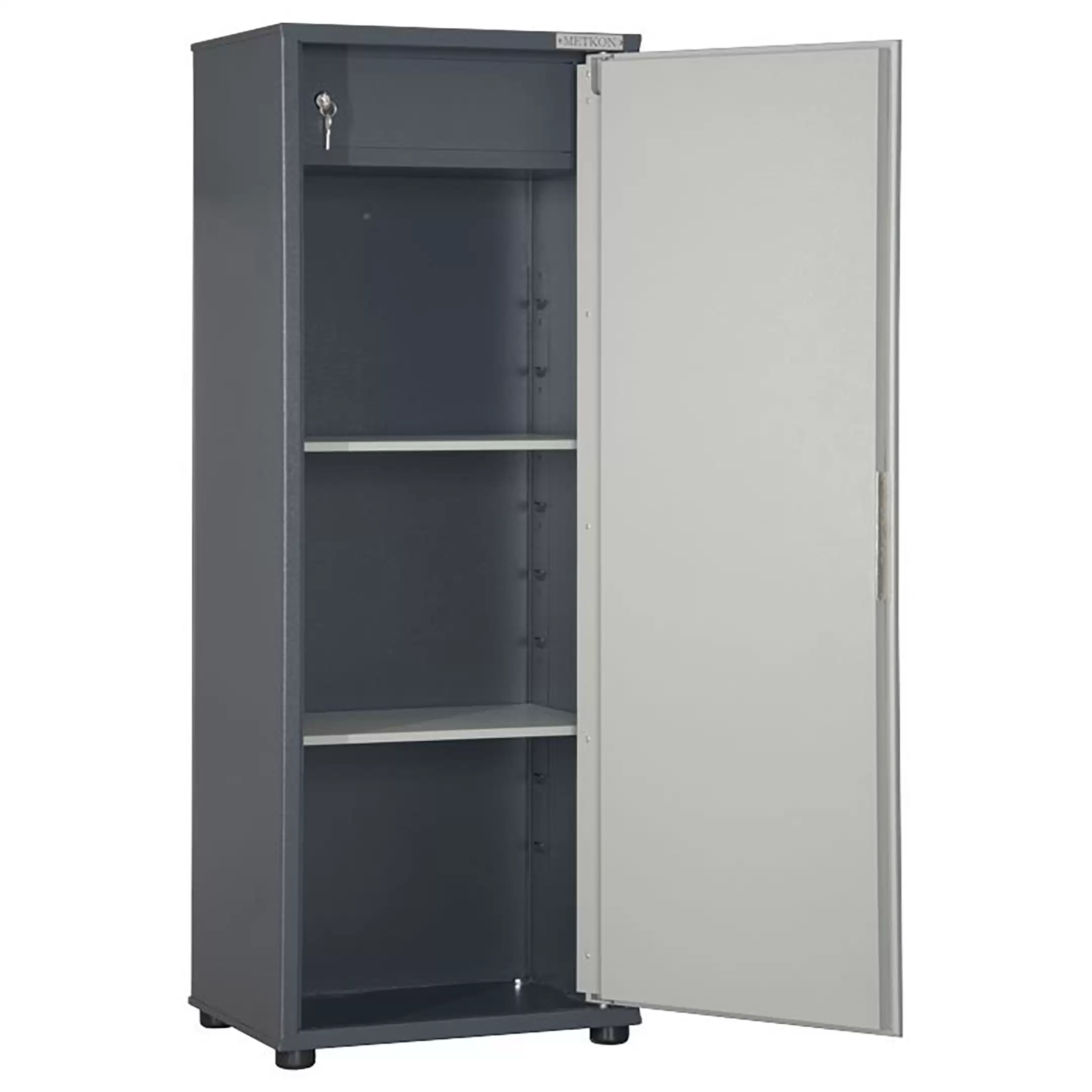 - Надежная система защиты содержимого — шкаф оснащен механическими замками на обеих створках, что обеспечивает сохранность конфиденциальных документов и ценных предметов. Простая и проверенная система запирания исключает несанкционированный доступ к хранимым материалам.