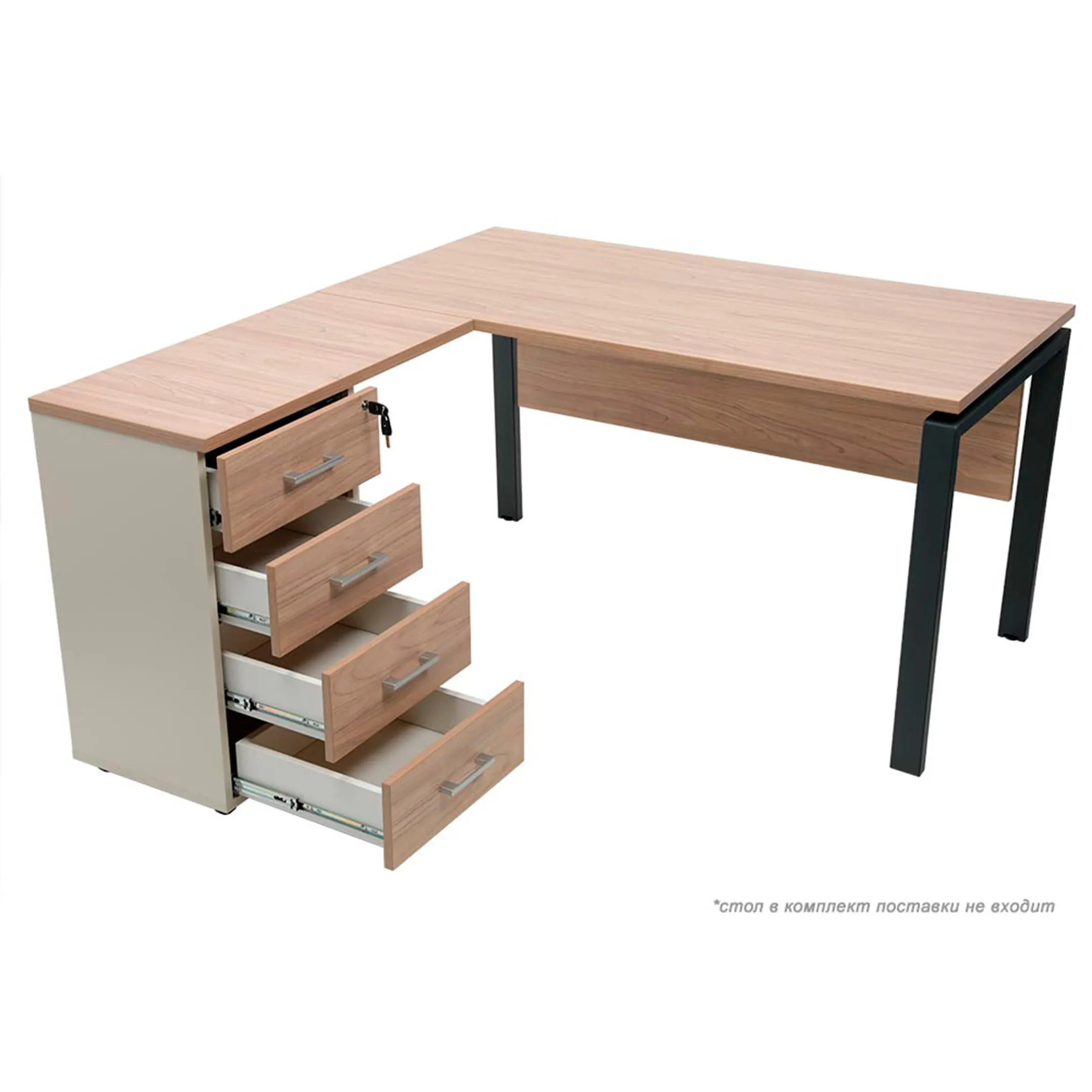 • Тумба снабжена центральным замком и оснащена пластмассовым лотком для канцелярских принадлежностей в верхнем ящике.