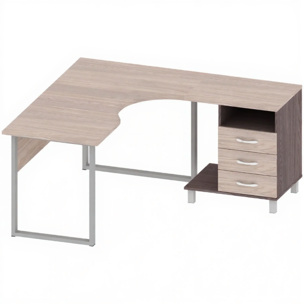 Стол угловой правый с тумбой на металлическом каркасе ОФ-СТ-199-1 — это профессиональное рабочее место с усиленной конструкцией для организации комфортных рабочих зон для правшей в офисах, административных учреждениях и учебных заведениях. Угловая форма стола позволяет оптимально использовать пространство помещения, а правосторонняя компоновка создает удобные условия для работы правшей. Прочный металлический каркас обеспечивает повышенную устойчивость и долговечность, а функциональная тумба предоставляет удобное пространство для хранения документов и принадлежностей.