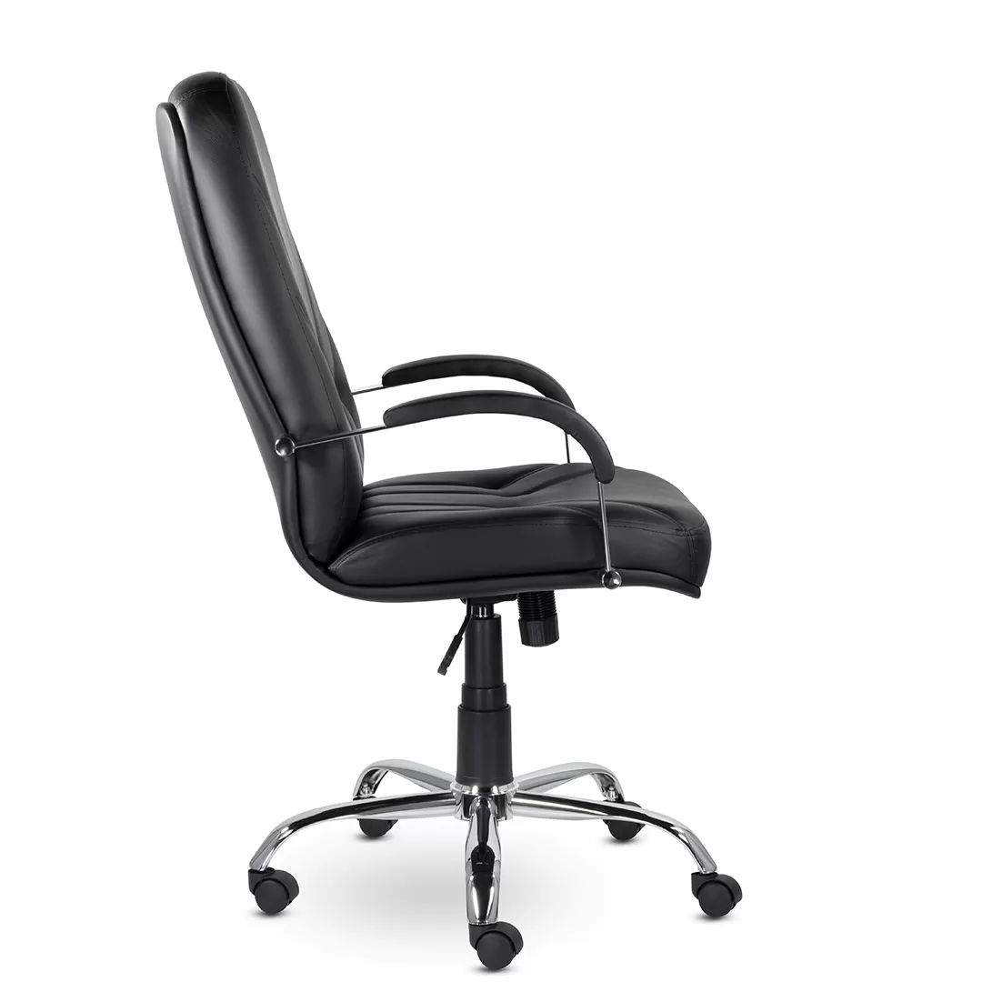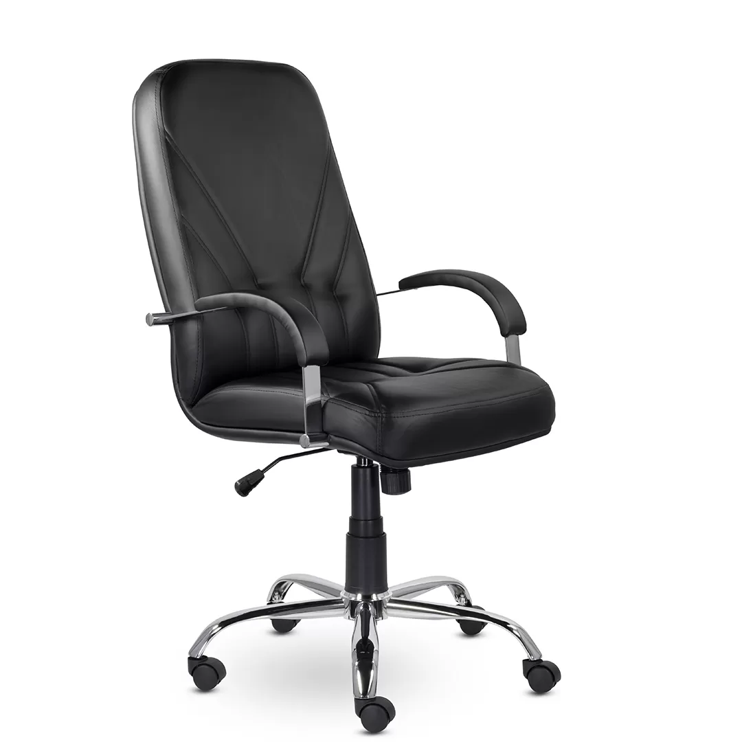 - Хромированная крестовина и ролики — устойчивое основание и плавное перемещение по офисным покрытиям.