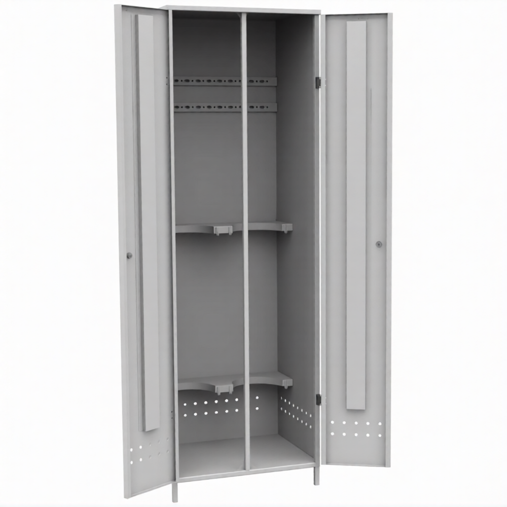 - Усиленная конструкция для долговечности и устойчивости — шкаф «усиленный» означает, что он изготовлен из стали увеличенной толщины с дополнительным усилением каркаса и самих ножек. Это гарантирует повышенную устойчивость, предотвращает деформацию под нагрузкой и обеспечивает долгий срок службы даже при установке вне помещений или в условиях повышенной влажности.