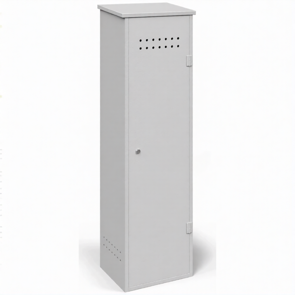 - Надежная антивандальная защита и сохранность имущества — усиленная сварная конструкция с массивными петлями, противосъемными штырями и возможностью установки врезных замков превращает шкаф в высокозащищенное хранилище. Это эффективно защищает дорогостоящий баллон и газ от краж, несанкционированного доступа и вандализма, особенно при уличной установке или размещении в проходных местах.