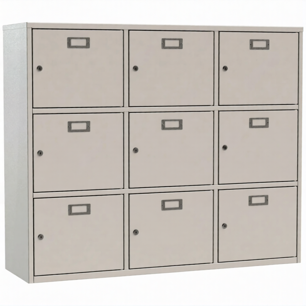 • 9 ячеек для касок. Каждая ячейка оснащена почтовым замком с двумя ключами в комплекте.