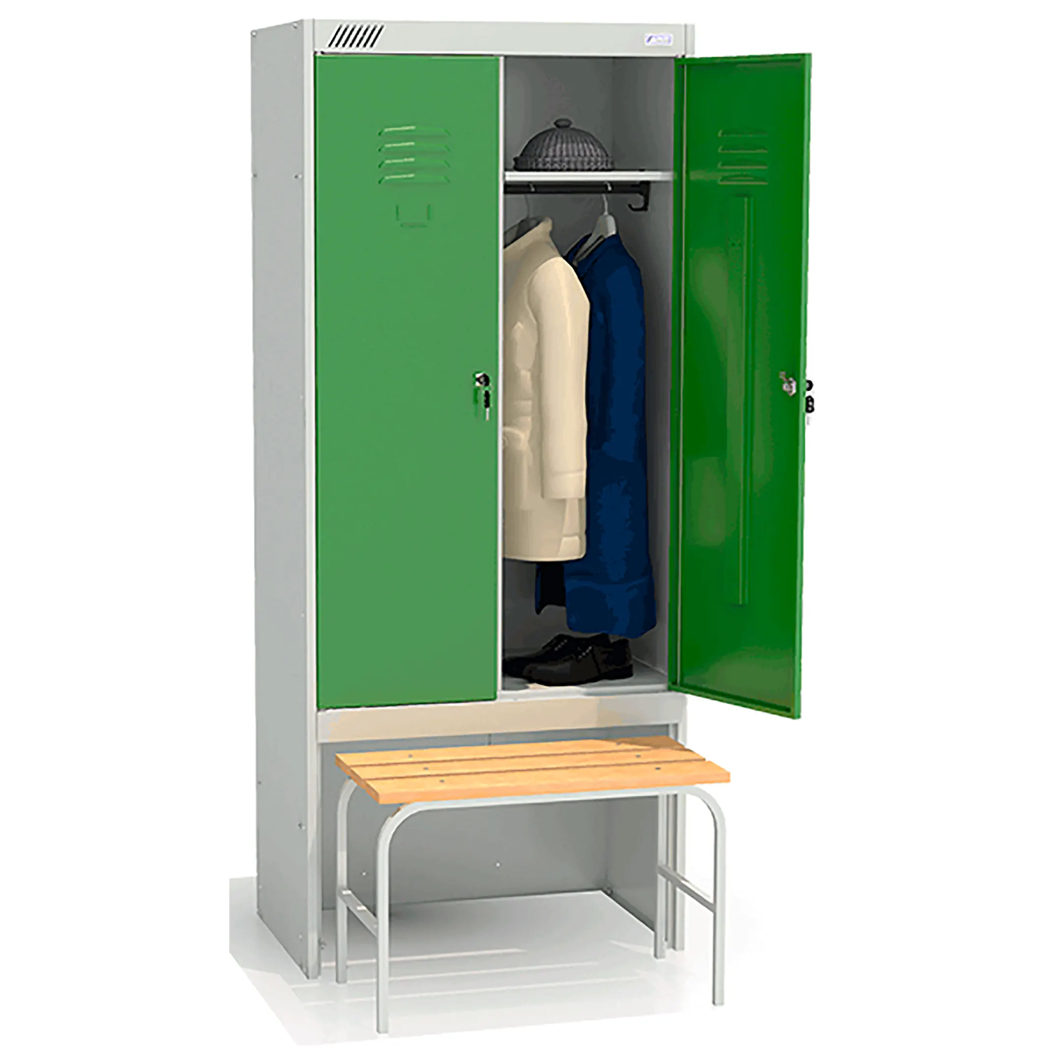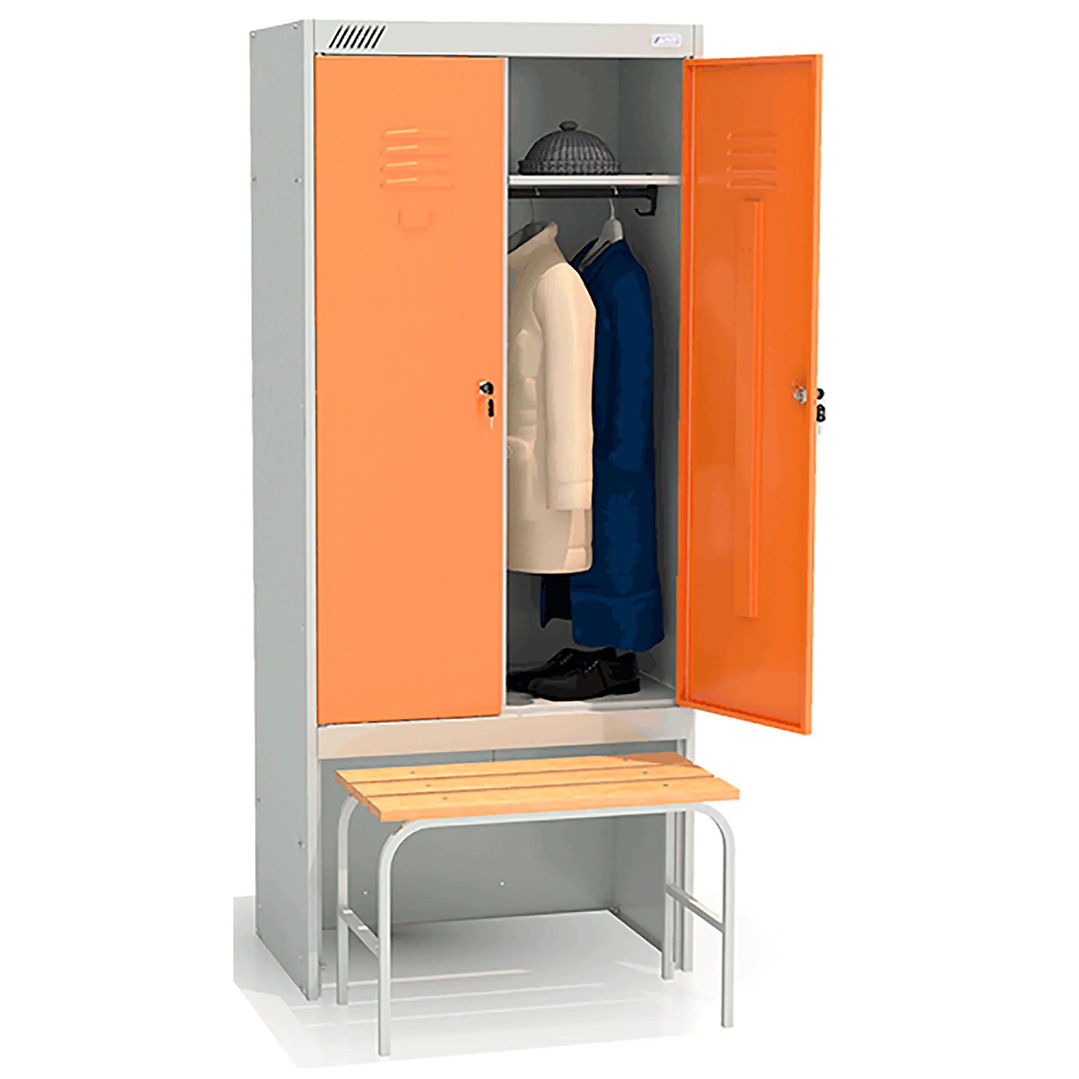 • комплектуется двумя замками повышенной секретности, двумя полками под головные уборы, двумя перекладинами, четырьмя крючками;