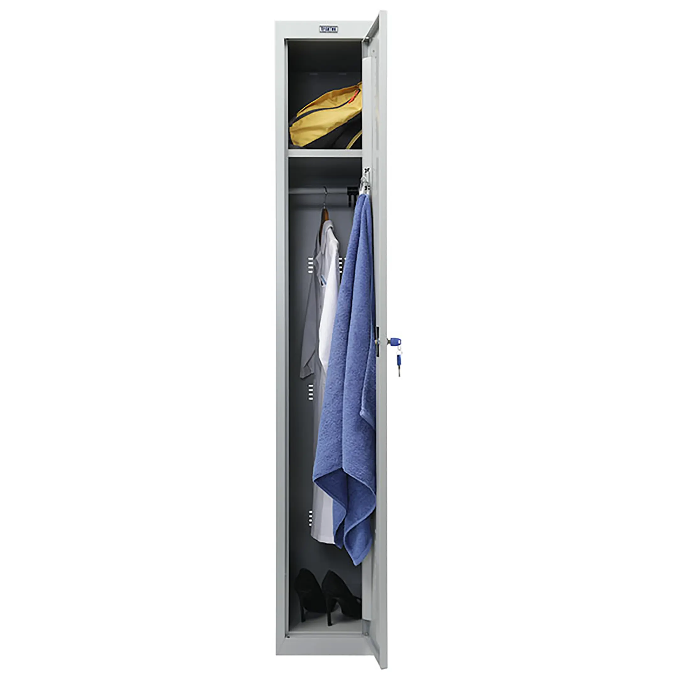 Шкаф для раздевалки ML 11-30 предназначен для хранения одежды в производственных, спортивных и других помещениях, хоз.инвентаря, а также для организации камер хранения.