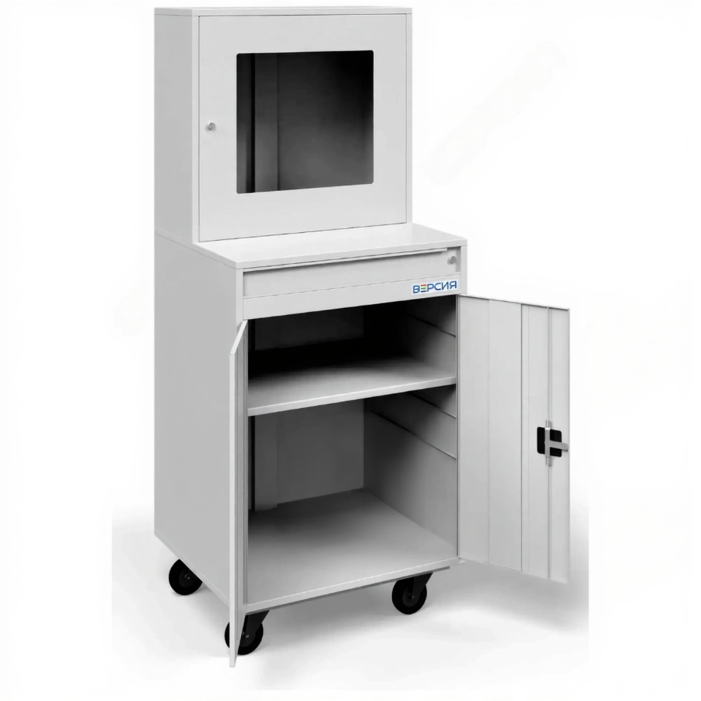 - Профессиональная организация пространства — внутри шкафа предусмотрены полки для системного блока, организации проводов и хранения документов или расходных материалов, что поддерживает порядок и облегчает обслуживание.