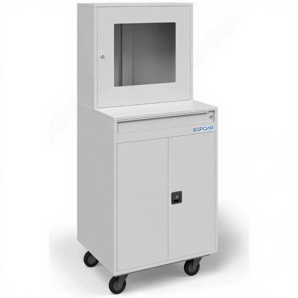 Шкаф компьютерный металлический под ЖК монитор (1732x720x600) — это специализированное и эргономичное решение для компактной и безопасной организации автоматизированных рабочих мест (АРМ) или информационных киосков в учебных заведениях, офисах, регистратурах и общественных пространствах. Модель с габаритами 1732x720x600 мм представляет собой высокий металлический шкаф, в верхней части которого предусмотрено место для монтажа ЖК-монитора, а внутри и снизу — для размещения системного блока, клавиатуры, документов и другого оборудования. Конструкция предназначена для создания защищенных, организованных и эстетичных точек доступа к информации.